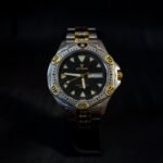 Powered by a precise Swiss quartz movement, it features a day-date display neatly tucked at 3 o’clock, adding both function and charm. With its classic diver-inspired silhouette and understated luxury, this CYMA is a rare find for collectors who appreciate the fusion of heritage elegance and sport-driven aesthetics.