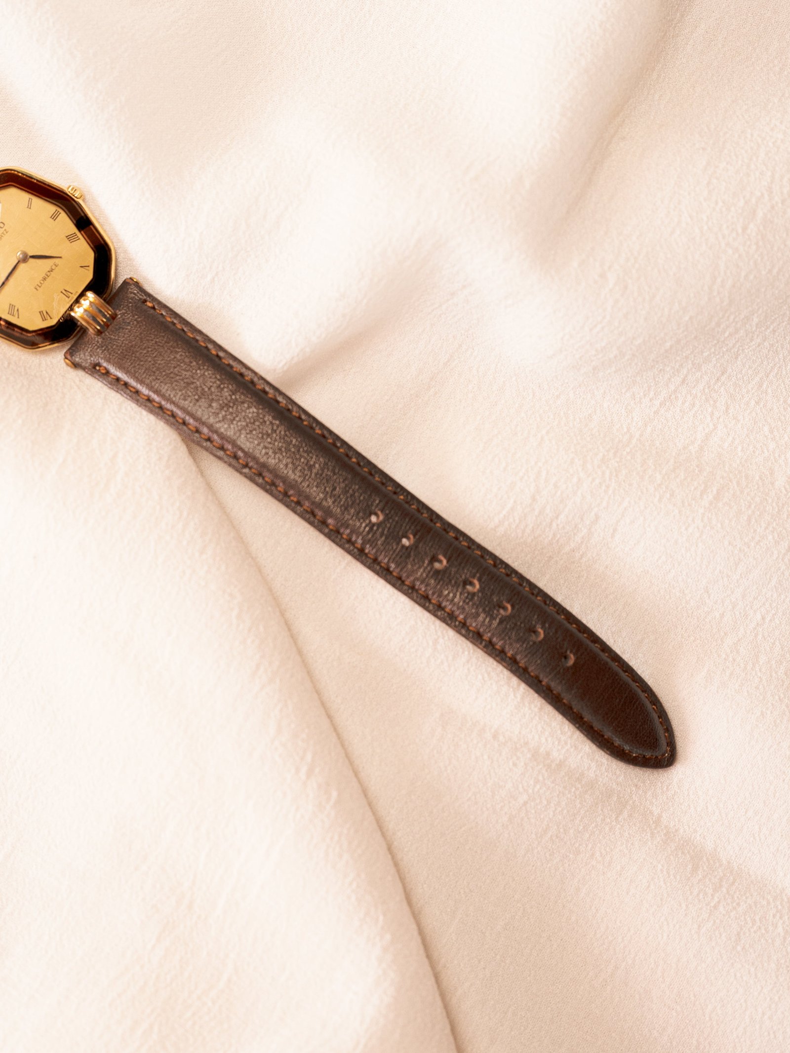 Dial: Gold with Roman numeral indices