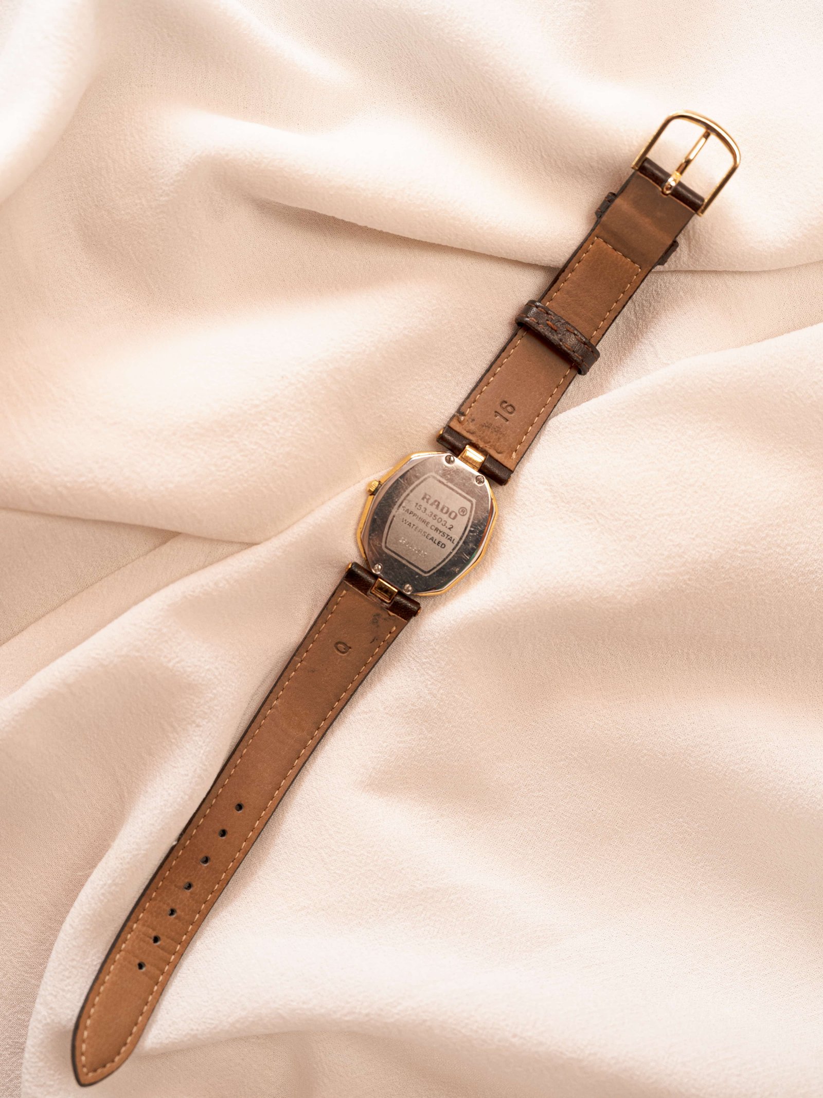Strap: Brown leather, 16 mm lug width