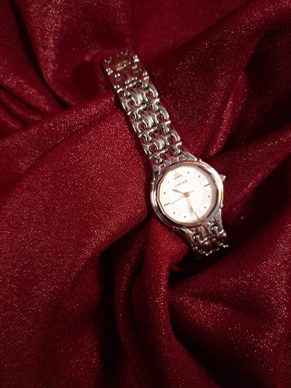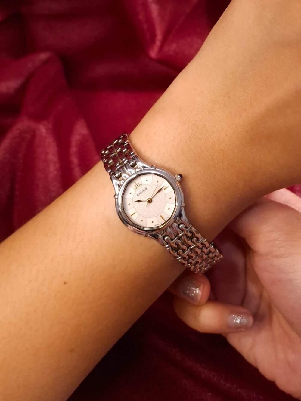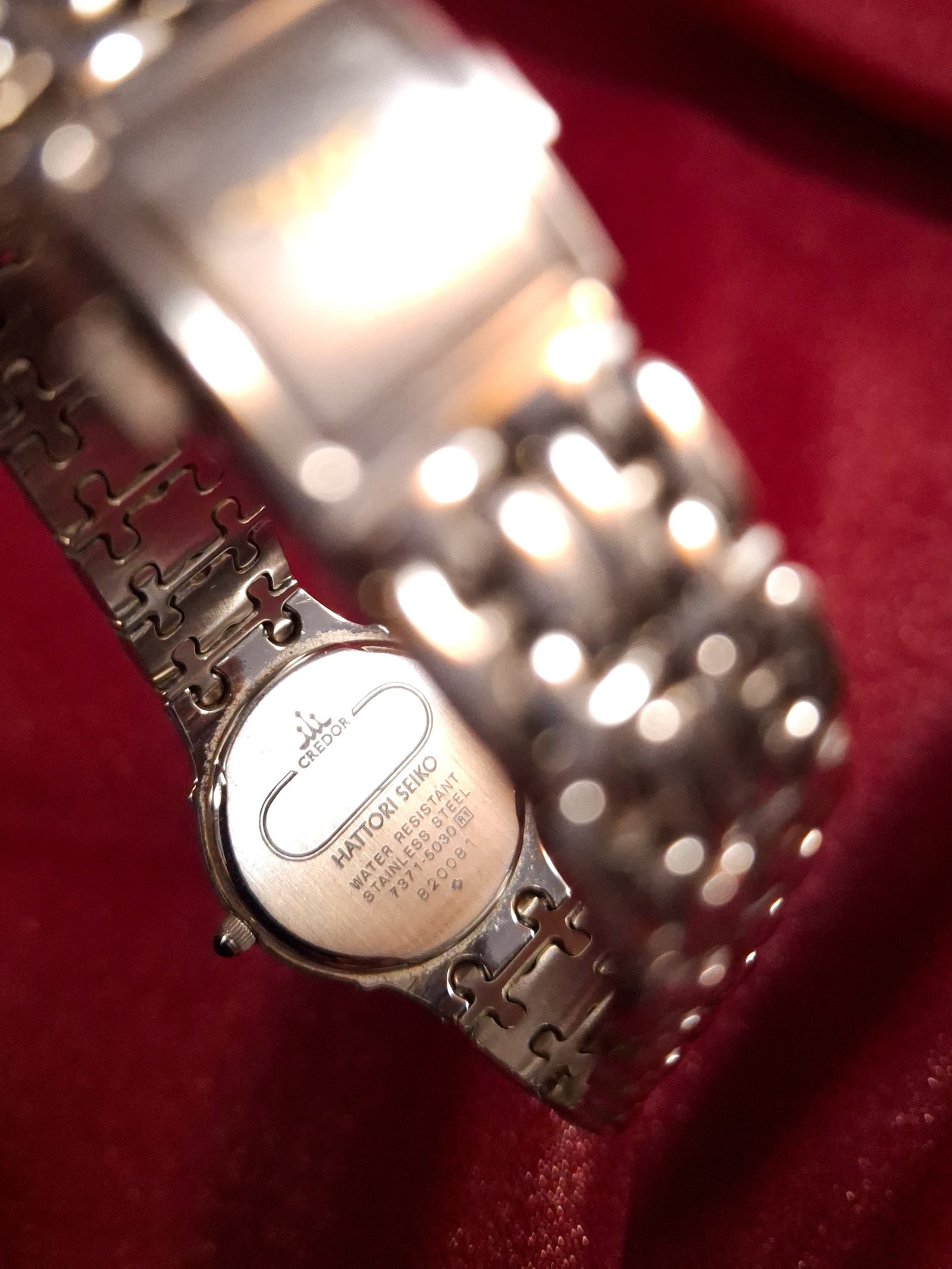 On the caseback, the watch is signed “Hattori Seiko”, a charming nod to Seiko’s original family name and a clue to its late-80s heritage, when Credor represented the golden crest of Seiko’s craftsmanship. The compact 22.6 mm case and 29 mm lug to lug length hug the wrist beautifully, while the 11.5 mm bracelet tapers gracefully for comfort. This Japanese quartz movement keeps time with effortless precision, letting the design take centre stage on wrists up to 16.3 cm.